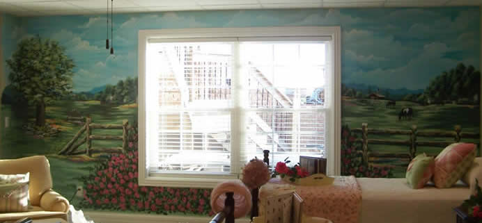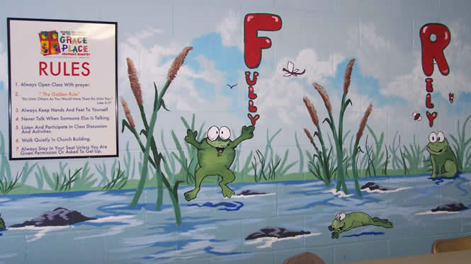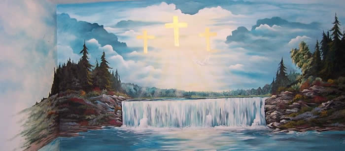 Below is a small example of a couple Baptistry and murals that I have done. I've done several but seems like I never get a picture of them when finished for the most part. I've done countless murals, five baptistrys, several play props, signs, etc.... I'm sure I'll be adding to this page, next time I'll make sure and pack my camera!!!! |