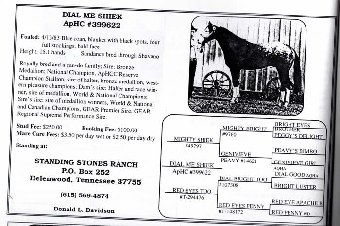 Dam is own grandaughter of Mighty Shiek, linebred Bright Eyes Brother |