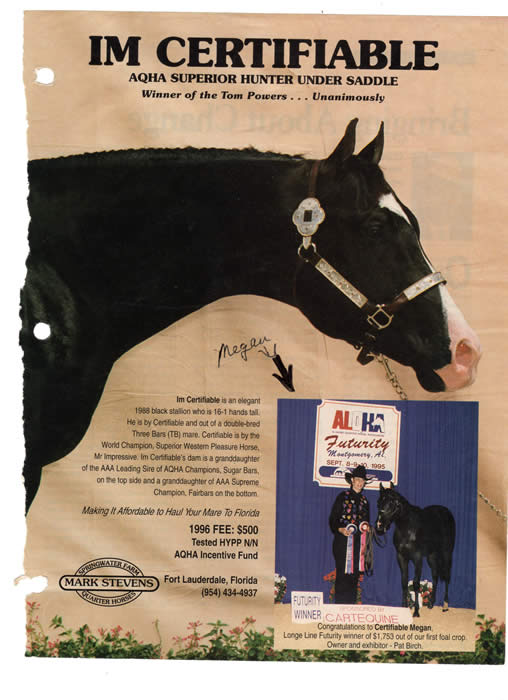 2015 Foaling season Certifiable Megan and Drea Rainwater's fire Due July 2015 |