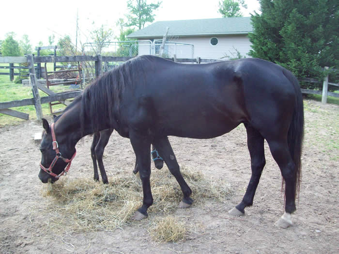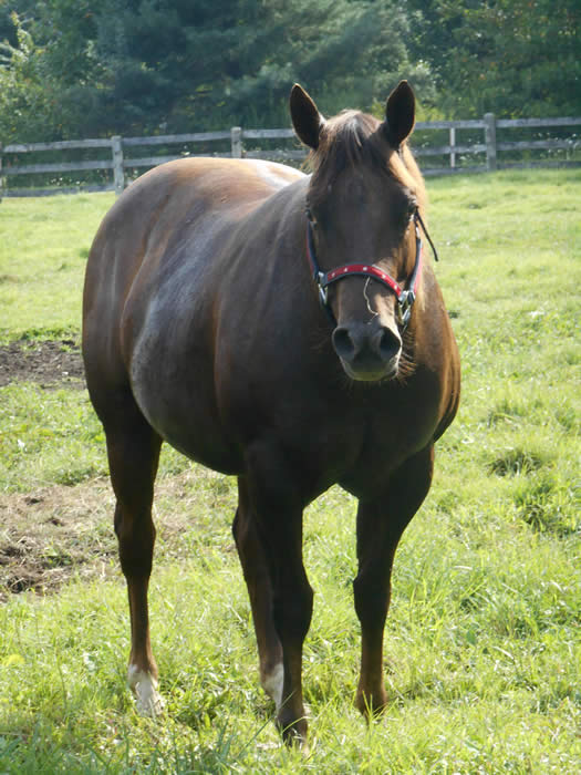 Snazzy Confection Chestnut/sorrel with blanket This beautiful mare is a super addition to our farm! she's a Big 15.3 hand chunk of a mare, super sweet docile personality..Her bloodline is a good one! She goes back to the Stallion Roman's straw man by Hayes Roman cloud, Sonny Dee Bar, and goes back to Secretariat three times in her first five generations! She's 73% foundation Pedigree designated. We accquired this mare for mostly riding.. She brings to the table a heavy frame, excellent feet and awesome disposition with alot of size. |