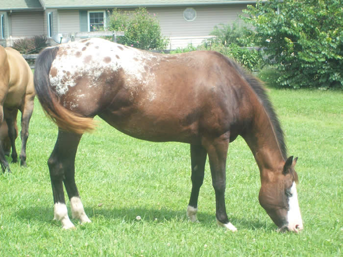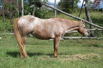 Prince's Clay Mist Strawberry Roan Reg # 507387 04/08/90 This was my first appaloosa! I bought her as a yearling, she had never been handled! Took three days to get a halter on her, Oh but she's been a pleasure to own, such a nice ride and never been sick a day in her life. Old performance bloodline tracing to Skipper W and Prince plaudit multiple times, king bred as well. This mare has been rode around the world and back. She's run Barrels, she's done trail class, she's carried me over many a trail. We've done parades, and she's raised some wonderful babies for me as well. She's 20 this year, for 19 years she's been my best buddy, and is in semi retirement, she's a wonderful riding mare, so we loan her out for beginners and friends, other than that, she simply takes it easy. We don't know if we'll breed her again, I may do that to keep a potential filly from her and Max, as I've always bred her to outside stallions. But she has a home here for life. She is such a special mare, they only come like this once in a lifetime! Not for sale. Prince's clay is now Retired. Click on Prince's Clay's Photo to go to her site. |