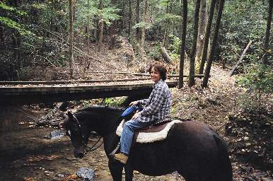 | Me and Banner on a ride, hmmm. maybe 10 years ago! | Kelly and Kit, one one of Kit's first trail rides. | Kim and Levi on a trail ride. |