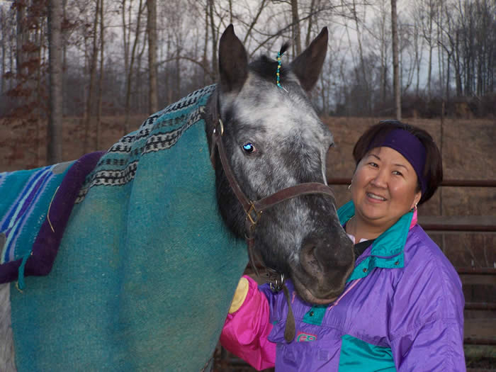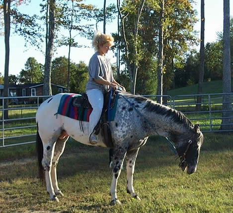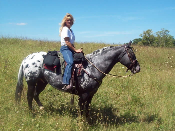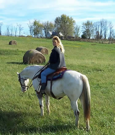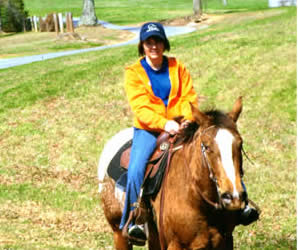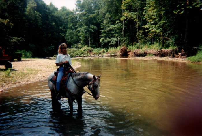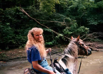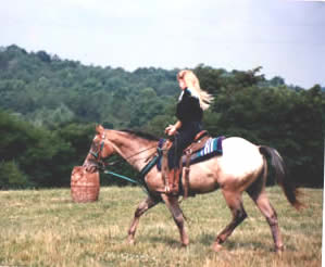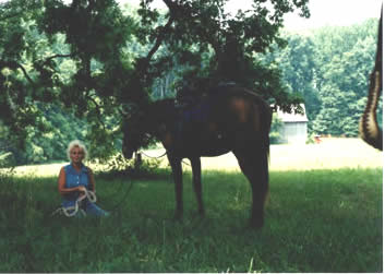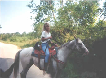 | Me and Cody, many years ago. | Teresa and her mare taking a break | Kelly and Kit, posing for the camera. |