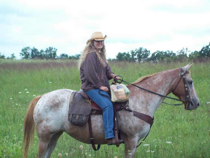 | I can't say enough about this mare, she's been a pleasure to own the 20 years I've had her. One of the smoothest riding horses I've ever been on. She has never had a sick day in her life, She's Run Barrels, worked a trail course, showed with youth in walk trot classes, she's given many riding lessons on beginners and been a wonderful teacher. She's logged hundreds of miles in her lifetime and continues to be the picture of health. She's produced six foals, Four fillys and two stallions. She was my first appaloosa, we bought her as a yearling and we'll have her till she passes. This year she is 21 years old, so she's in Semi retirement. She'll be used for Light trail riding, and sincerely I don't know if I'll rebreed her, she's certainly in perfect shape and could raise a foal. I would like to keep a filly from her someday by a fewspot stallion. That may be in her future. Her pedigree is an old one and a good one, she would cross well on a foundation stallion. |